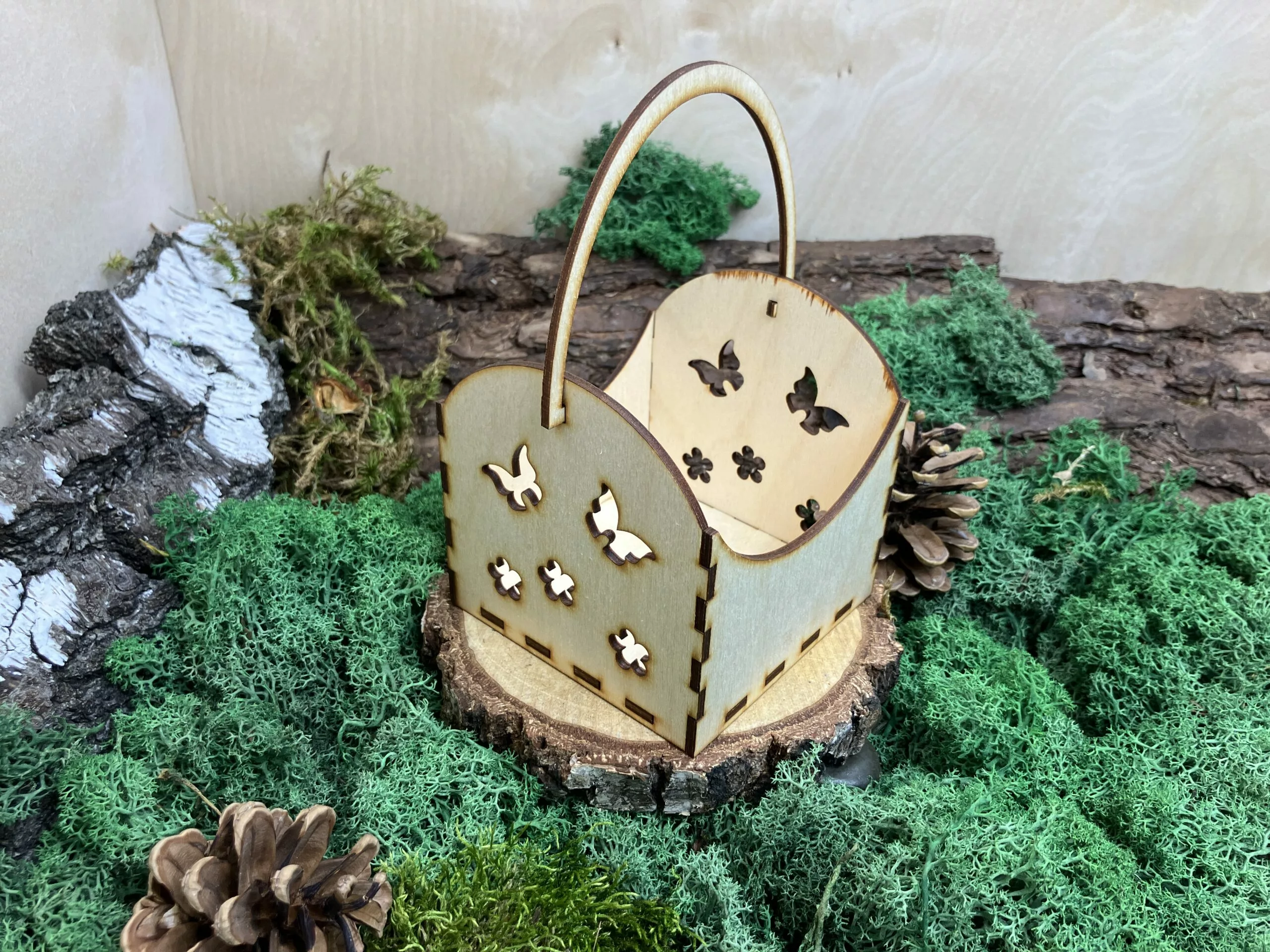 - Wykonany ze sklejki: Sklejka jest nie tylko lekka i wytrzymała, ale także daje możliwość precyzyjnego wycinania delikatnych wzorów, co sprawia, że nasz koszyczek jest nie tylko piękny, ale także solidny.
